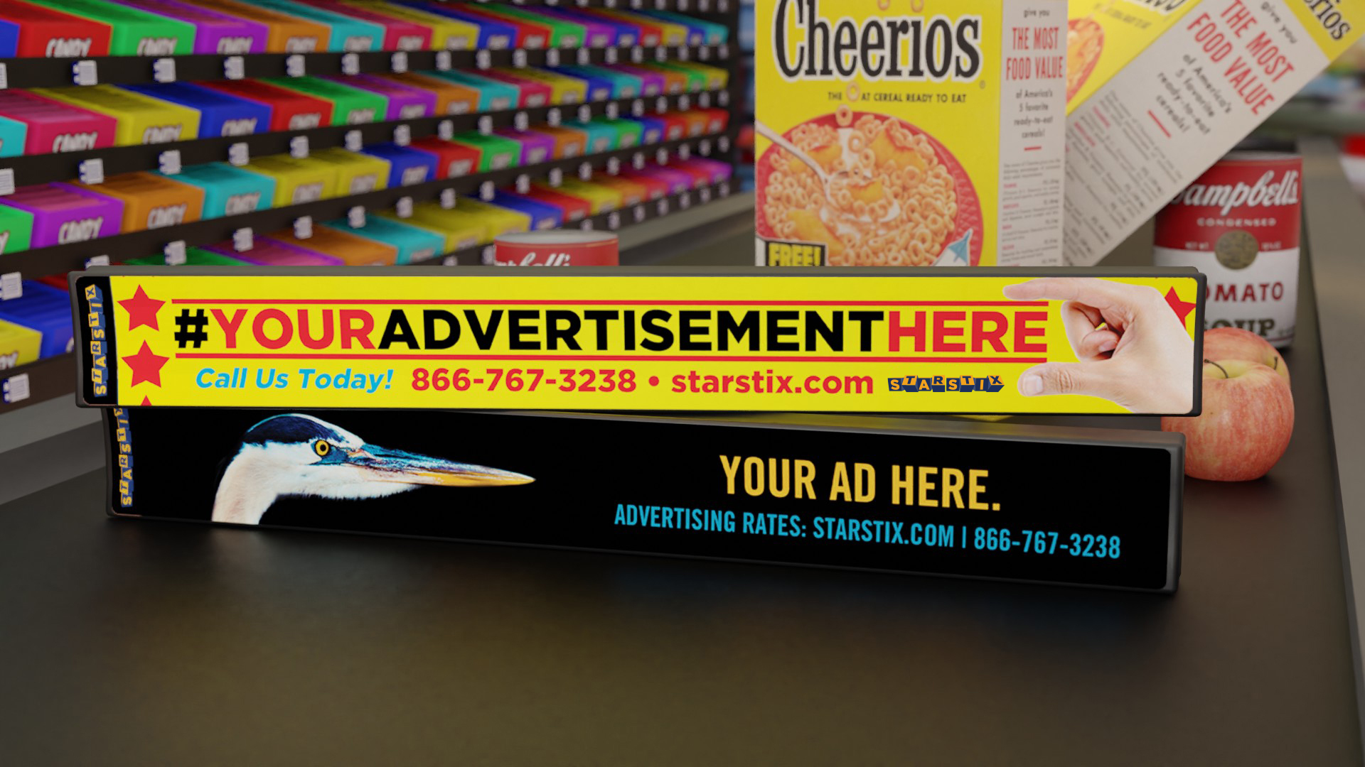 Be EXCLUSIVE. With STARSTIX, you are the only business on EVERY full-service checkout lane divider in the store. With constant exposure, repetition and pinpoint targeting, you may be seen by tens of thousands of shoppers weekly.